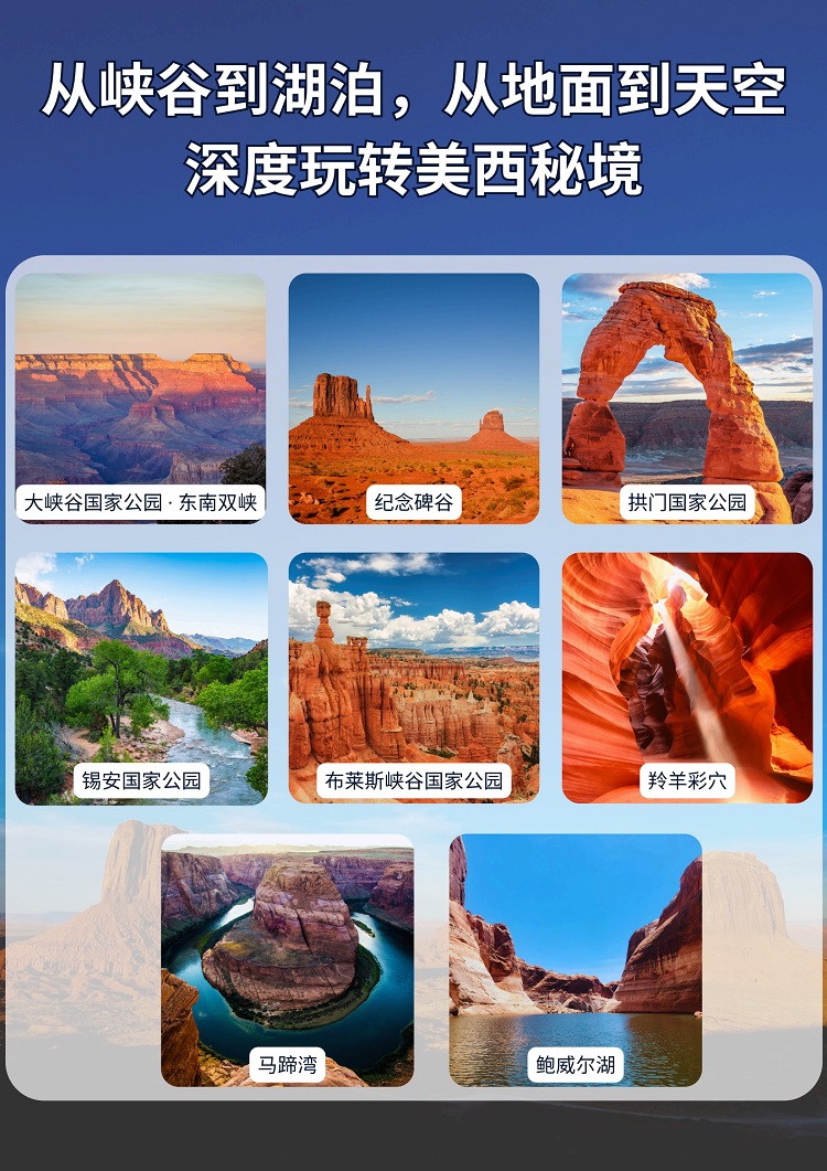 | 第4天 | 羚羊彩穴 → 大峡谷国家公园 → 拉斯维加斯 | 胡佛水坝大峡谷国家公园大峡谷南缘玛泽观景点沙漠景观瞭望塔拉斯维加斯 |
