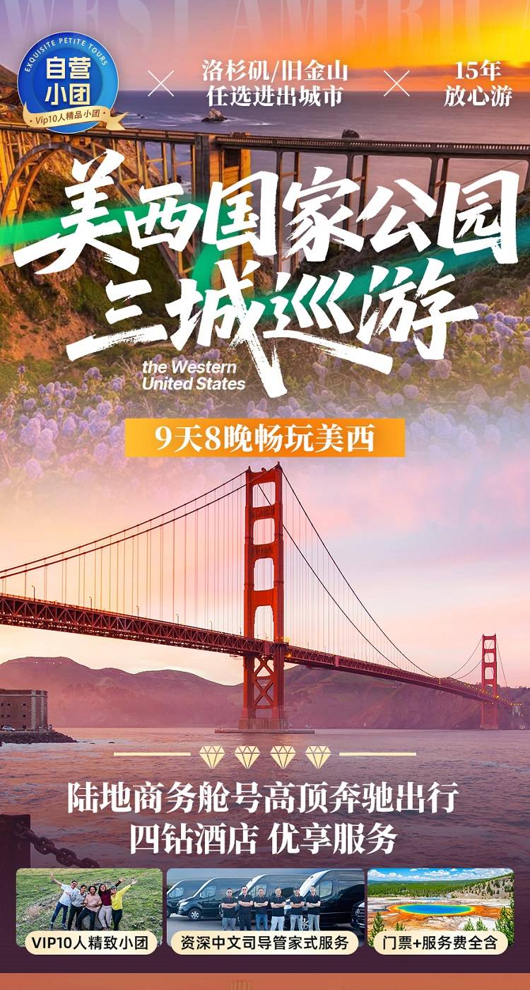 全程由我们专业的中文导游贴心服务,致力于为您打造一次舒适、高品质,融合自然与人文的尊贵之旅。行程圆满之际,我们将护送您前往旧金山国际机场。祝您旅途愉快,期待与您再次相会!