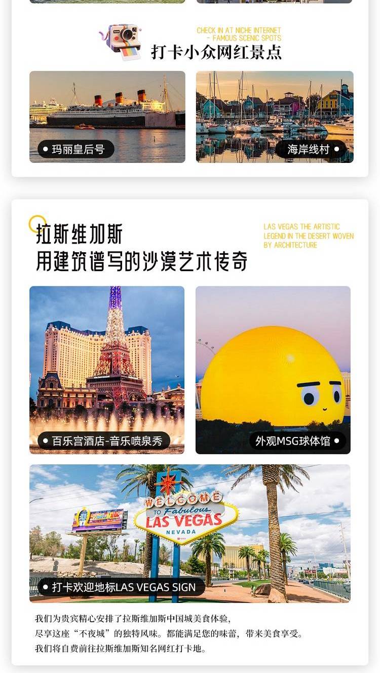 我们为贵宾精心安排了拉斯维加斯中国城美食体验,尽享这座“不夜城”的独特风味。都能满足您的味蕾,带来美好的美食享受。我们将自费前往拉斯维加斯知名网红打卡地。