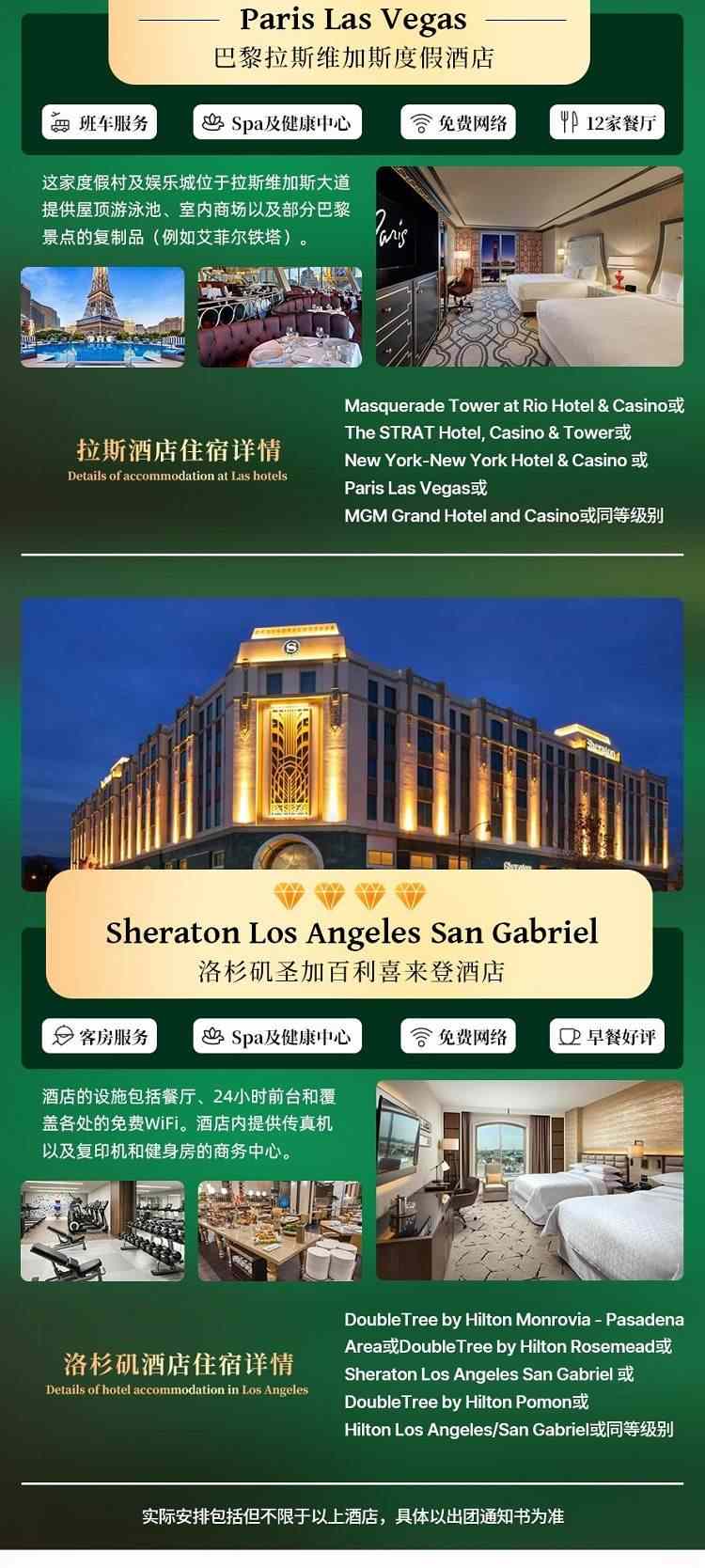 | 第三天 洛杉矶-拉斯维加斯 | 早餐含双早 午餐中式桌餐 晚餐自理 | $30 | $30 |