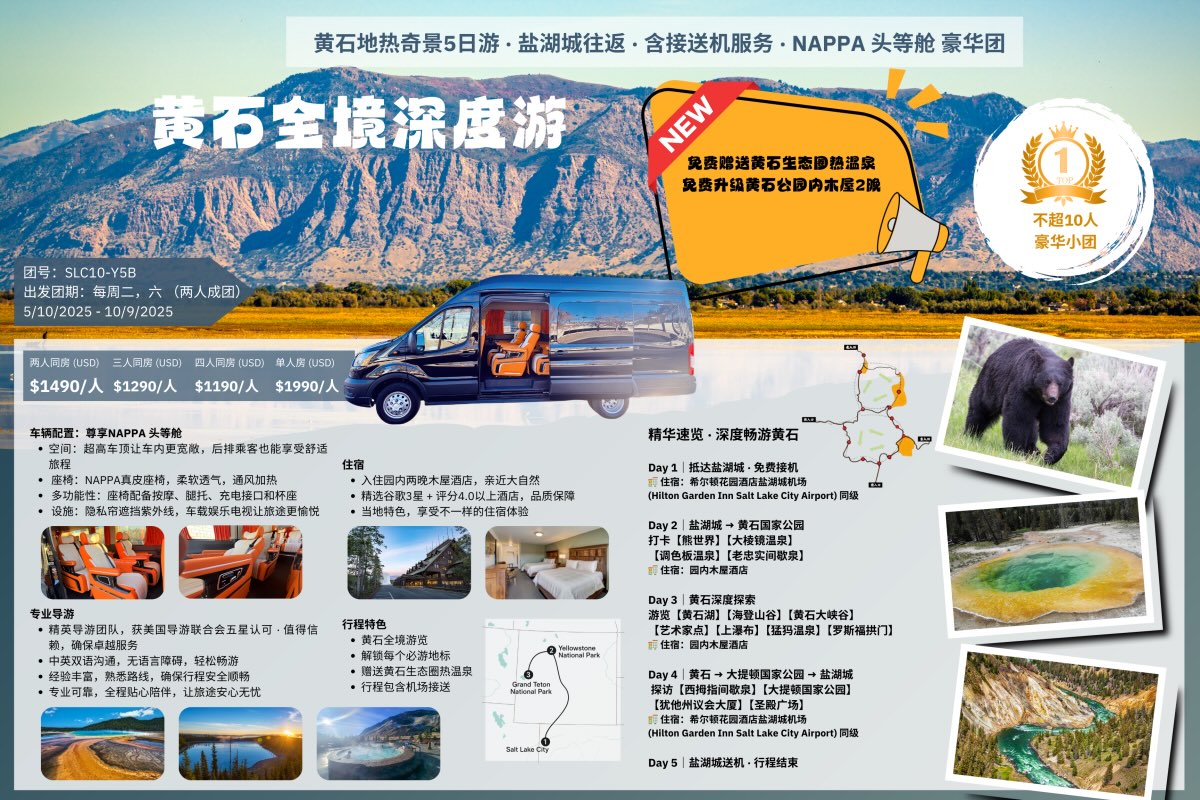 | 第2天 | 盐湖城 → 黄石国家公园 → 黄石熊世界 → 大棱镜温泉 → 调色板 → 老忠实间歇泉 | 盐湖城大盐湖黄石国家公园熊世界大棱镜温泉画家调色盘老忠实间歇泉 |