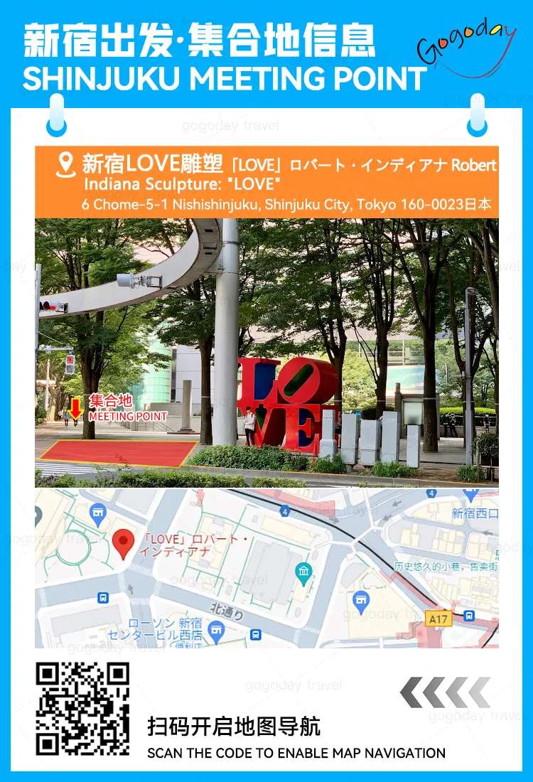 接送:巴士团,8点,东京,JR东京站丸之内北口;8:30 新宿LOVE雕塑;小团,7:00-8:30 东京都内酒店民宿上门接(提前确认是否在接送范围);